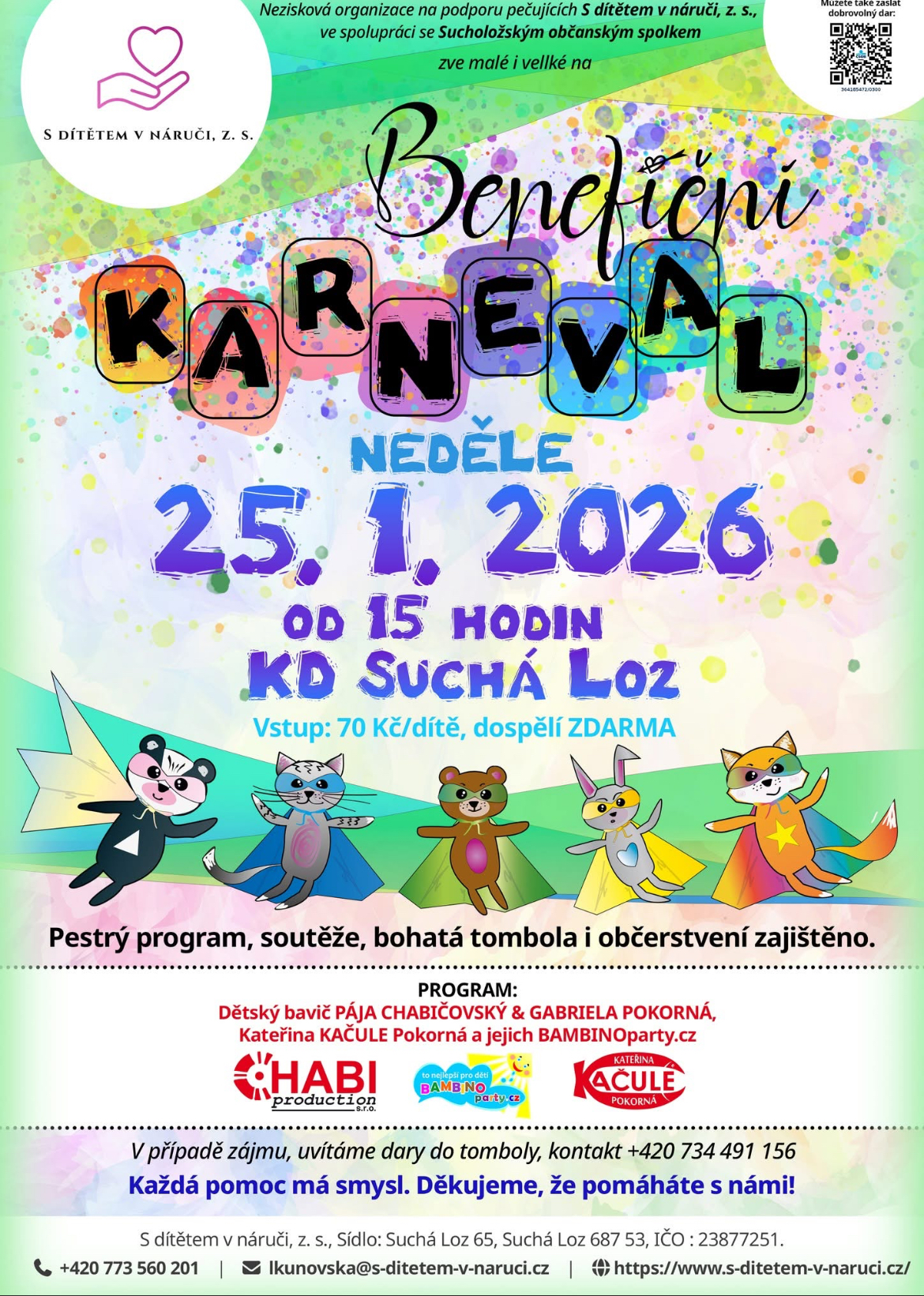 Benefiční karneval naší neziskové organizace S dítětem v náruči, z. s., je za námi a my bychom se s Vámi rádi podělili o jeho zhodnocení.